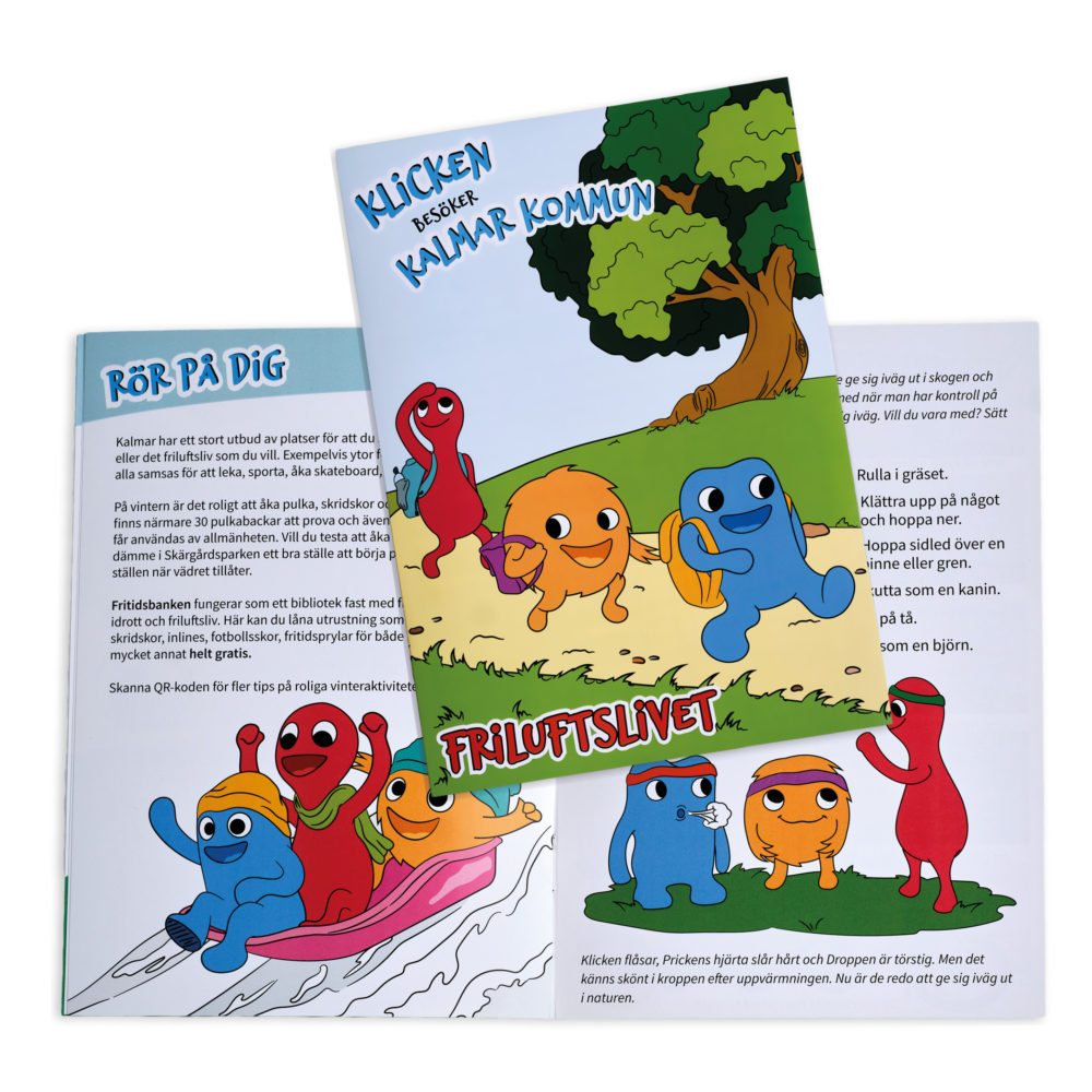 Vi har även möjlighet att skapa broschyren ”Klicken berättar om friluftslivet” en broschyr som visar var era lekplatser, vandringsområden och andra kul saker som finns att uppleva i er kommun.